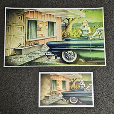 LARGE Numbered ed Keith WEESNER print vtg 58 Ford Fairlane Mid Century poster