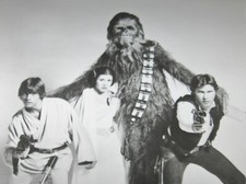 Star Wars B&W Cast Photo Luke Hans Princess Leia Wookie Classic Action Movie