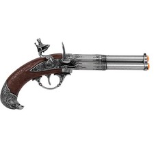 Denix 18TH CENTURY 3 BARREL FLINTLOCK PISTOL ANTIQUE GRAY FINISH, WOOD GRIP