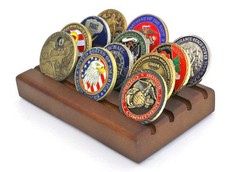 Challenge Coin Display Stand Wooden Holder Rack Case Holds 12 Military Coins ...