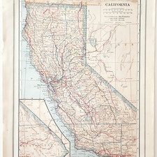 1914 California State Map Collier World Atlas Gazetteer Antique Collectible