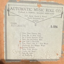 Automatic Music Roll Co. Clark A-886 Player Piano Roll for 65-Note Rewind Piano