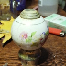 Antique Floral Ceramic and Brass Bed Post Finial White Gold Multicolor Floral