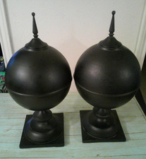 ANTIQUE LARGE 21" ARCHITECTURAL METAL SPHERE ROOF FINIAL PAIR