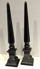 ANT. PAIR BRONZE 18" ARCH. TABLETOP OBLISK/FINIALS, CREMATION FLUTED BASE,INDIA
