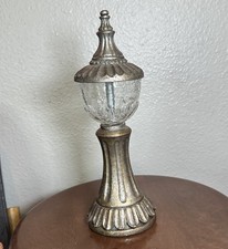 Distressed Gold Pedestal Urn Crackle Glass Decorative Accent 12”