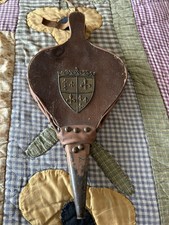 VTG 1950’s Embossed Hammered Brass Leather Wood Fireplace Bellow England Peerage
