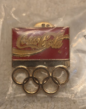 COCA COLA OLYMPIC GAMES PIN with RINGS /UNOPENED PACKAGE / COKE NEW OLD STOCK