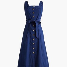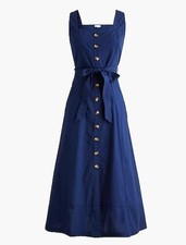 NWT J.Crew Button Front Belted Midi Dress Antique Navy Size 10