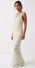 Free People Women's S Antique White Crochet Fairy Wedding Western Maxi Dress