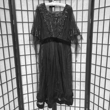 Antique Effect Black Whimsigoth Dress With Floral Embroidery At Neckline Size M