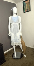 Large Antique Lace Drop Ruffle Cami White Lined Dress Fairy Romantic New