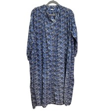 ICHI Antiques Cotton Linen Shift Dress Kaftan Oversized Japanese Blue Floral