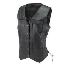 Womens Motorcycle Leather Vest Genuine Cowhide Leather Black Concealed Carry US