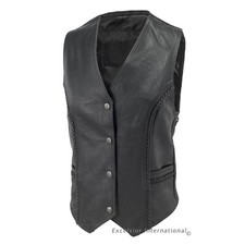 Ladies Women Braided Soft Black Leather Biker Motorcycle Concealed Carry Vest