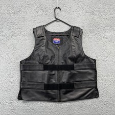 Street Essentials Unisex Black Soft Leather Concealed Carry Biker Vest Size L