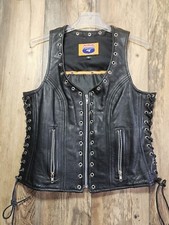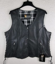 New Concealed Carry Leather Vest Womens Large Motorcycle Classic Side Lace Biker