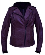 Womens Purple Lambskin Leather Jacket W Hoodie, Concealed Carry Pockets