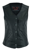 ladies womens Premium soft leather biker motorcycle vest black concealed carry