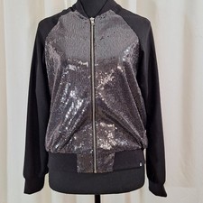 Star Wars Sequin Bomber Jacket Black Silver Womens Juniors Large Rebel Alliance