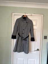PENNY BLACK Womens Overcoat UK 10 Small Black Houndstooth Wool DC82