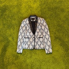 Maje oldmoney style jacquard blazer with leather collar grey size 38 womens