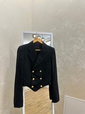 Antique 1940s Vintage Double Breasted Gold Buttons women’s cropped black wool Bl