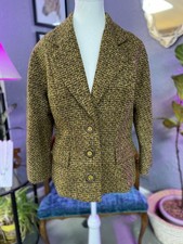Dorothee Bis Wool Blend Yellow Brown Blazer Antique Buttons Size 12