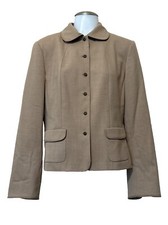 Talbots Stretch Wool Spandex Tan Antique Look Buttons Blazer Jacket SZ 8 Lined