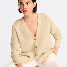 J. CREW Relaxed Cotton Linen Blend Cardigan Sweater Antique Cream Sz M $98 {AA6}
