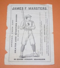 Antique 1874 JAMES MARSTERS Sporting Goods BASEBALL price list BROOKLYN NY