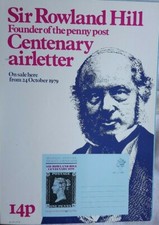 GREAT BRITAIN 1979 POST OFFICE PROMO CARD FOR ROWLAND HILL PENNY BLACK AEROGAMME