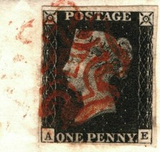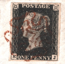 Penny Black Plate 1a Fine Four Margins on Cover with a RED Maltese Cross