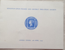 1954 KINGSTON ON THAMES PHILATELIC SOCIETY DINNER PENNY BLACK SIGNED MENU CARD