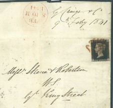 1840 Penny Black Plate 4 BH Letter Red MX 24 July 1840 on Cover and Whole Letter