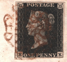 GB 1840 PENNY BLACK Cover BROWN MX *Bo'ness* 1d Plate 8 (RK) 1841 Cat £9,500 16m