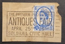 GB Stamps 4d Wilding 1950s with Solihull Antiques Fair Slogan Cancel on piece