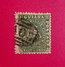Antique British Guiana#33 Used - 1862 24c Green ($80) Stamp