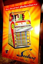 RARE- UNIQUE RARE TIN STORE ADVERTISING SIGN - SEEBURG 200 - JUKEBOX -ENGLAND