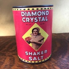 Vintage Diamond Crystal Shaker Salt Tin Can Coin Bank Advertising