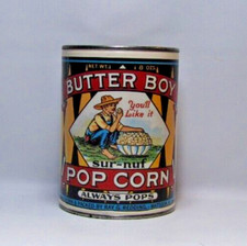 Butter Boy Popcorn Tin Can Bank Sur-Nuf Advertising Mattoon Illinois