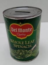 "DEL MONTE WHOLE LEAF SPINACH" TIN CAN Coin Piggy Bank ADVERTISING PROMO