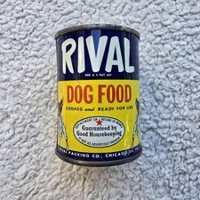 Vintage RIVAL Dog Food Tin Can Advertising Bank
