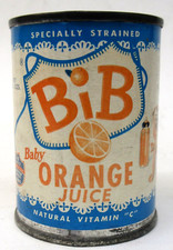 1950's BIB ORANGE JUICE advertising metal can BANK