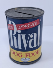 RIVAL DOG FOOD TIN CAN ADVERTISING BANK VINTAGE