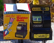 Vintage 30s Uncle Sam’s Register Bank Coin Cash Register Tin Toy Bank