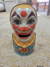 Vintage J Chein & Co 1930s Tin Toy Litho Clown Coin Mechanical Bank w/ Tongue