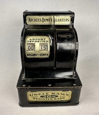 Vintage Uncle Sam's 3 Coin Register Metal Bank Toy & Novelty Cleveland OH Tested