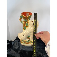 Antique 1870's Staffordshire Spill Vase White Dog Figurine Pottery 13"