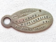 Antique Medal DOG TAG Or Key Fob, N. L. TURNER, HOPKINSVILLE, KY Reward If Found